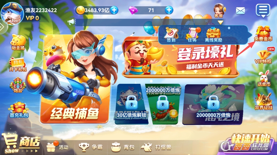 新手入坑第一步,优先完成新手引导任务,跟随引导熟悉炮台操作、倍率调节、技能释放等基础功能,完成新手任务后可获得大量初始金币、新手炮台与技能道具,这些资源能帮助新手快速起步,避免初期金币耗尽的尴尬,为后续捕鱼与升级打下基础。