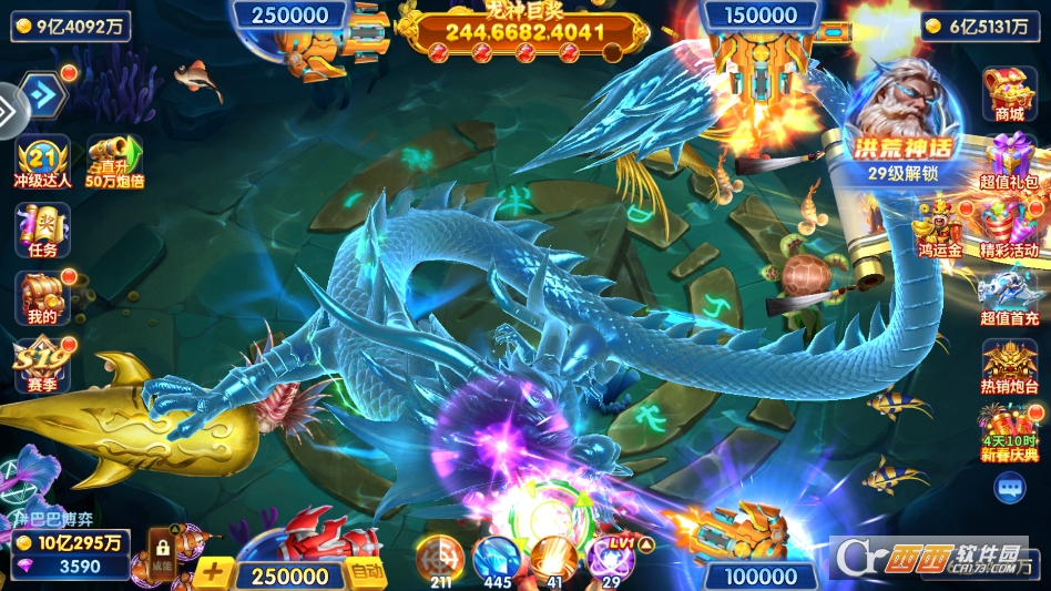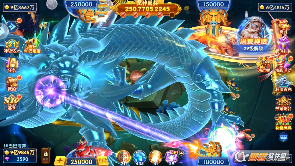 内置大量全新捕鱼活动,每日任务、每周挑战、节日专属活动等持续更新,完成简单目标即可领取海量金币、钻石、炮台皮肤与限时特权,福利不间断。