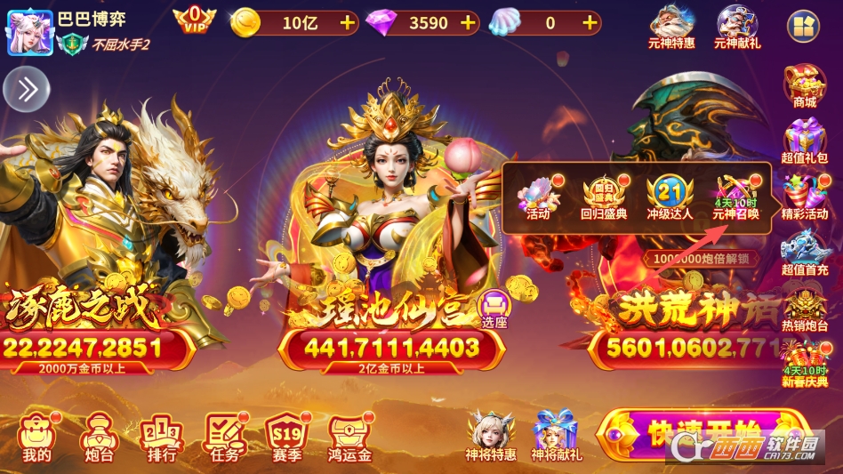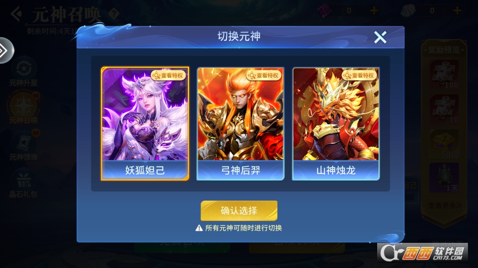 点击游戏主页右侧的精彩活动选项,打开元神召唤界面