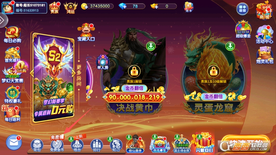 破产了不要急,点击主页下方的免费金币选项