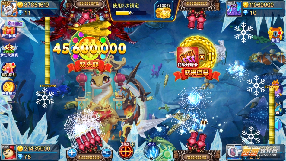 新增“深海秘境”主题场景与10种全新深海鱼类,包括稀有荧光鱼、巨型深海巨兽等,新增鱼类均搭载专属游动轨迹与捕获机制,其中稀有荧光鱼捕获后可获得双倍金币奖励,巨型深海巨兽作为隐藏BOSS,解锁特定条件即可挑战,击杀后可掉落神器碎片与高额金币,丰富游戏内容与探索乐趣。