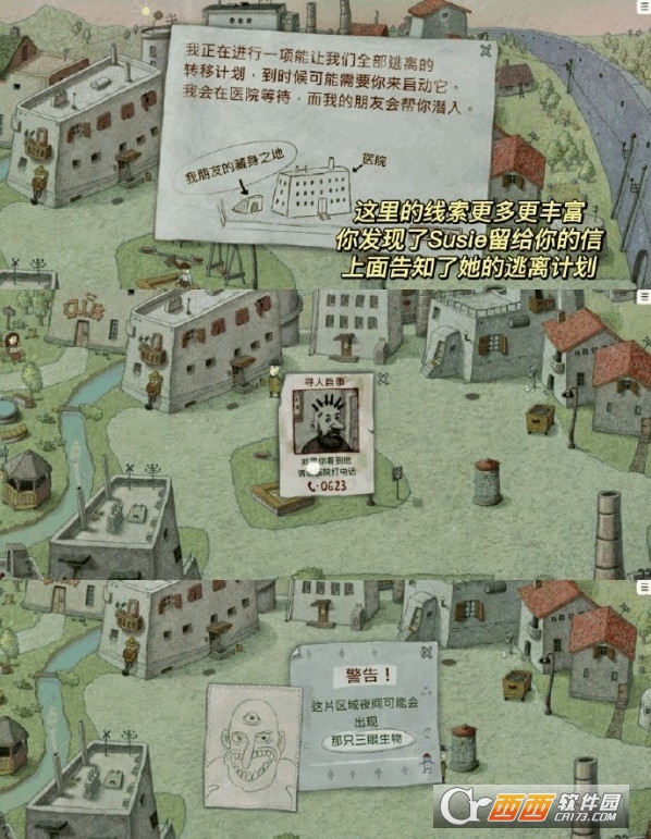 游戏背景设定在一个被高墙分隔、由神秘医院掌控的奇异小镇,玩家将化身侦探PaulTrilby,因一封紧急信件受邀前往小镇调查——这里的居民进入医院后会离奇失去记忆,看似平静的日常背后,一场关于记忆操控、人性真相的阴谋正在悄然酝酿。玩家需通过探索场景、对话NPC、破解谜题,一步步拼凑破碎线索,揭开小镇被封锁的秘密,解锁多重结局,感受剧情背后关于“真相与认知”的深刻隐喻。