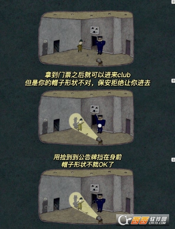 5、拿到门票之后就可以进来club,但是你的帽子形状不对,保安拒绝让你进去,用捡到到公告牌挡在身前,帽子形状不就OK了。