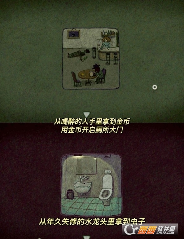 6、从喝醉的人手里拿到金币,用金币开启厕所大门,从年久失修的水龙头里拿到虫子。