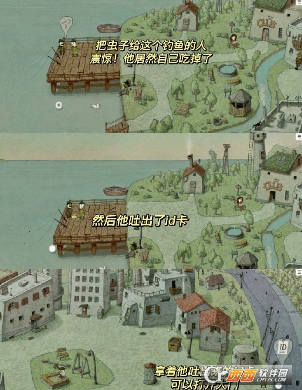 7、把虫子给这个钓鱼的人,震惊!他居然自己吃掉了,然后他吐出了id卡,拿着他吐出来的id卡,可以打开大门。