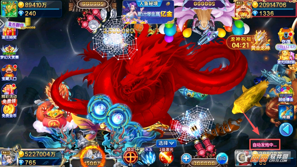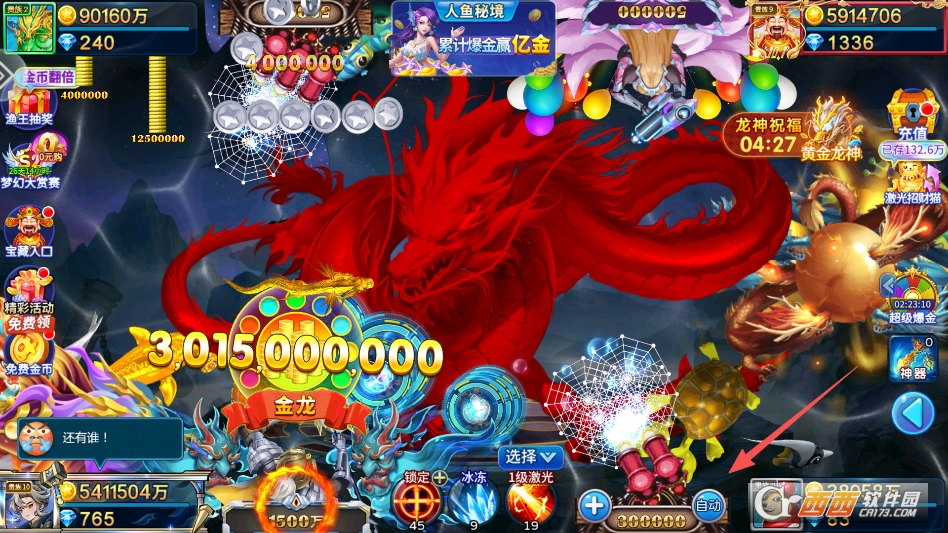 进入游戏,在渔场中找到你的炮台,点击炮台右侧的自动按钮