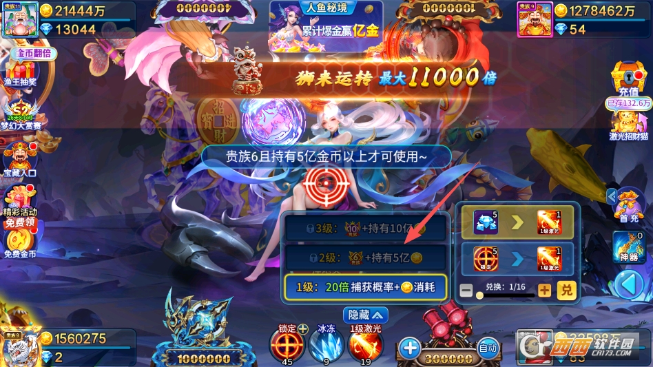 捕鱼盛世怎么升级激光炮