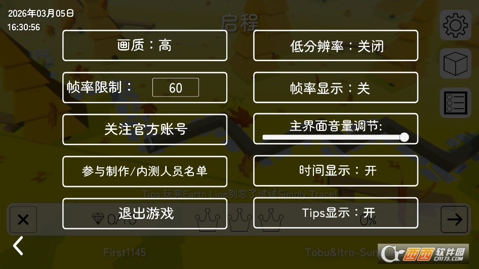 EarthLine(饭制)是一款由玩家自主研发、非官方授权的休闲节奏类单机游戏,以“地球生态”为核心主题,致敬经典节奏游戏玩法的同时,融入原创创意与细节设计,全程无商业元素,完全免费供玩家体验。游戏以简洁流畅的线条为核心载体,搭配贴合地球四季更迭、自然景观的原创背景音乐,玩家将跟随旋律节奏,操控线条在拟真化的地球场景中穿梭,躲避各类自然相关障碍物,解锁不同地域的生态场景,既保留了经典节奏游戏的解压感,又通过原创主题传递环保理念,是饭制游戏中兼具趣味性与情怀感的优质作品,适合全年龄段节奏游戏爱好者体验,无需复杂操作门槛,轻松上手沉浸。