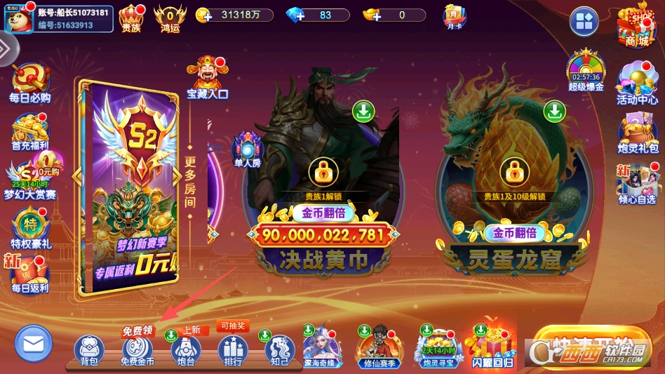 进入游戏点击主界面左下角的免费金币选项