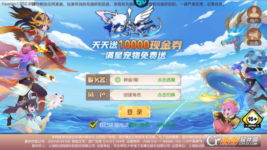 1、在本站下载安装好亿次元官方版,运行游戏选择区服并进入;