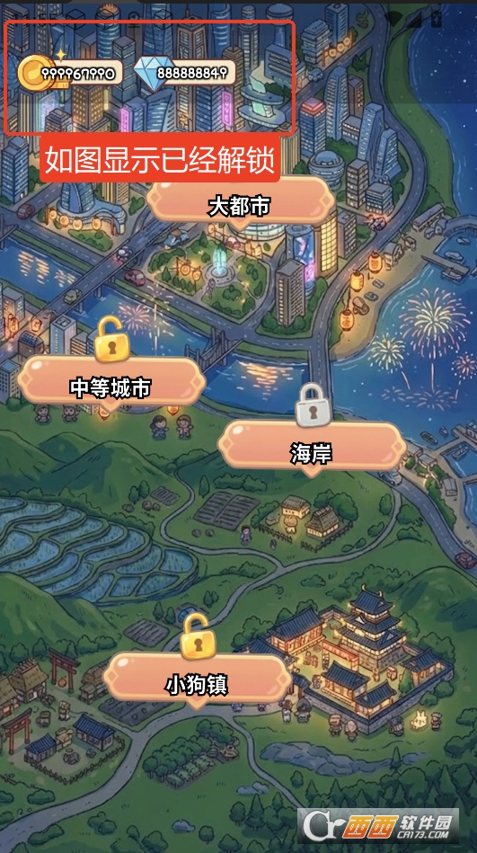 在西西小编点击该游戏下载安装,进入游戏页面,点击解锁关卡,点击购买就无需任何条件就能够购买成功