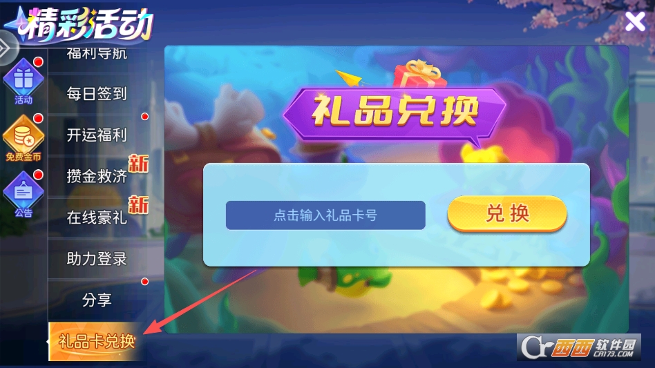 兑换码的兑换界面在主页下方的免费金币按钮里面