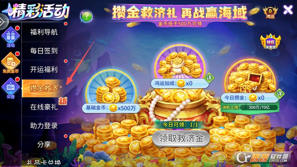然后在活动列表中找到救济金版块,即可领取到免费金币