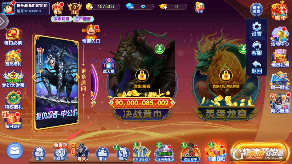 点击游戏主界面下方的免费金币选项