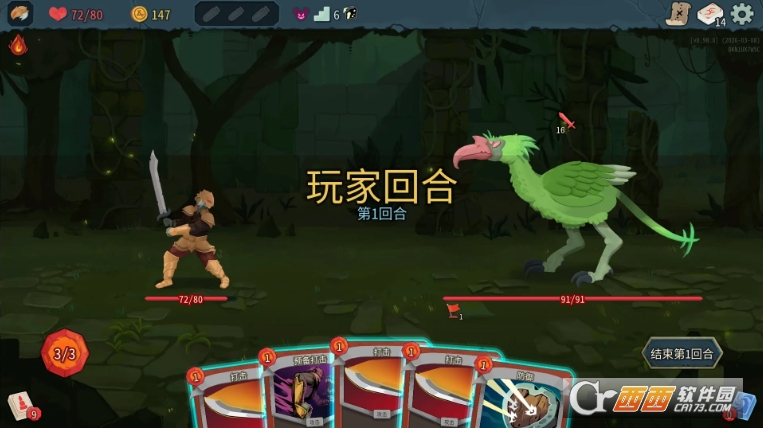 4、当前回合没有可操作的空间后,可以点击结束回合。