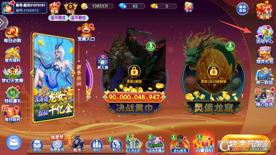 游戏主打亮点之一是九游专属福利拉满,作为九游官方正版授权版本,拥有专属新手礼包、专属兑换码、专属福利活动与专属渔场,登录即领九游专属新手大礼包,内含海量金币、高级激光炮体验卡、红包碎片,每日通过九游平台签到、完成专属任务,可额外领取福利,福利力度远超普通版本,同时支持九游账号一键登录,数据稳定,让九游玩家享受独一无二的专属待遇,轻松开启赚福利之旅。