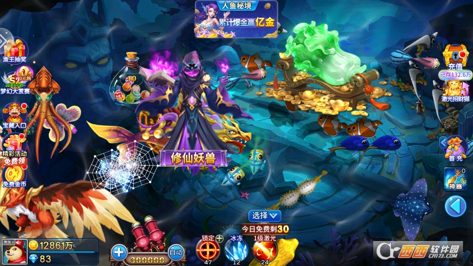 游戏主打特色之一是多种不同游戏模式自由选择,涵盖休闲捕鱼、BOSS围剿、竞技对战、深海探险等多种玩法,适配不同玩家需求,休闲模式适合新手练手、放松解压,竞技模式适合高手比拼技巧,BOSS围剿模式则充满挑战性,击杀通天魔童、幻境主宰等特色BOSS可获得丰厚奖励,玩法多样不单调。