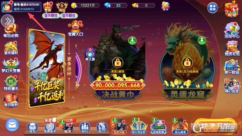 海量丰富的游戏福利是核心主打特色,登录即送亿万金币、初级炮台与锁定、冰冻等实用道具,每日签到、完成任务可领取递增奖励,连续签到还能解锁限定炮台皮肤,金币低于阈值时系统自动发放救济金,同时定期上线节日主题活动,可领取限定道具与大额金币,福利获取无门槛。