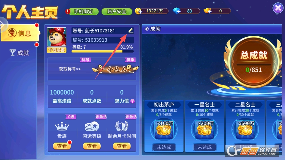 即可打开个人中心,然后找到你的昵称,点击右侧按钮就可以改名啦