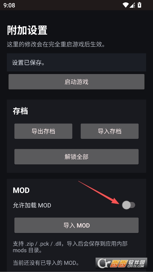 进入菜单,打开允许加载mod按钮