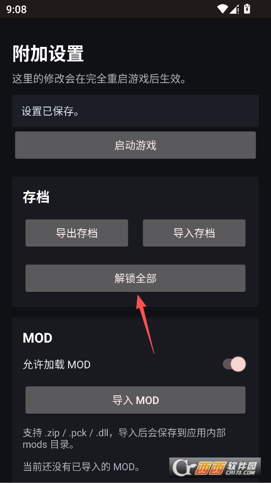 点击打开即可开启mod菜单,让你自由开启各种作弊功能了