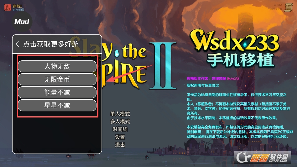 杀戮尖塔2内置菜单版是一款轻量化、高适配、零门槛的手机移植卡牌Roguelike游戏,核心定位是“手机移植、内置作弊、解锁全内容、畅玩无压力”,专为喜欢爬塔、卡牌策略类游戏的玩家打造,无需付费,下载安装后即可开启游戏,作弊菜单免费使用。游戏界面适配手机操作逻辑,简化复杂操作,触控流畅,无多余广告与冗余功能,核心围绕卡牌构筑、爬塔闯关展开,内置作弊菜单可一键开启无敌、无限金币、解锁全角色、全卡牌等功能,新手也能快速上手,轻松通关。