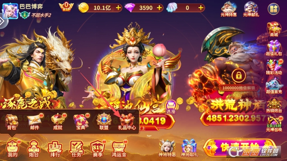 在主界面点击左下角按钮呼出菜单,再点击礼品中心