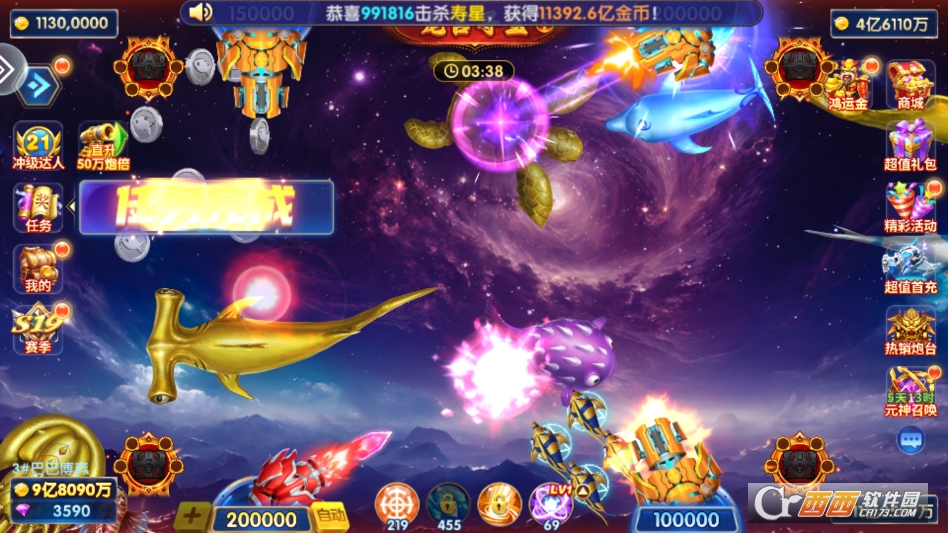 还有排行榜模式,实时更新玩家捕鱼积分排名,冲榜可获得绝版炮台皮肤与专属奖励,增强竞技乐趣。