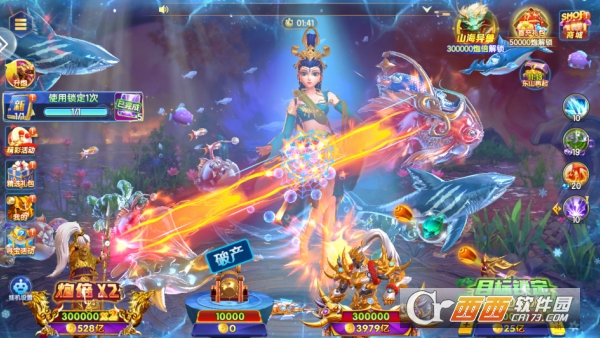 采用高品质 3D 国风美术设计,画面精致细腻,技能特效华丽震撼,将传统神话元素与深海捕鱼完美融合。游戏中登场洛神、盘古、杨戬等经典神话 BOSS,造型独特技能炫酷,带来远超普通捕鱼游戏的视觉体验,画面质感行业领先。