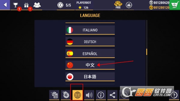 3、最后选择“地球”图标,将语言调整为“中文”就设置好中文了。