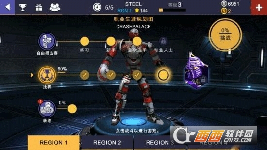 点击地图,里面有三个大分类,自由搏击、比赛和获取(氪金患者必备),难度也是逐渐增加。自由搏击主要是让玩家熟悉游戏的操作,让玩家尽快上手。