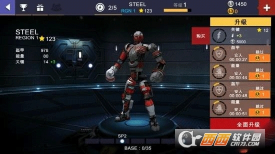 小编要特别给各位玩家介绍一下游戏神奇的升级系统。《铁甲钢拳冠军赛》有两套升级系统,一套叫升级,一套叫编辑机器人。机器人毕竟是个机器,第一个升级主要是升级机器人的软件设备,增加机器人的盔甲、能量和关键,提高机器人灵活性、力量和耐力。