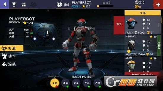 编辑机器人则是外在的升级,看上去就很厉害的升级,也是小编最喜欢的升级方式。打造、动作和涂装三大类。打造主要是机器人不同部位的机甲升级;动作则让你的机器人在比赛中动作更炫酷,更具观赏性;而涂装则是将机器人喷涂成不同的颜色,更帅气。