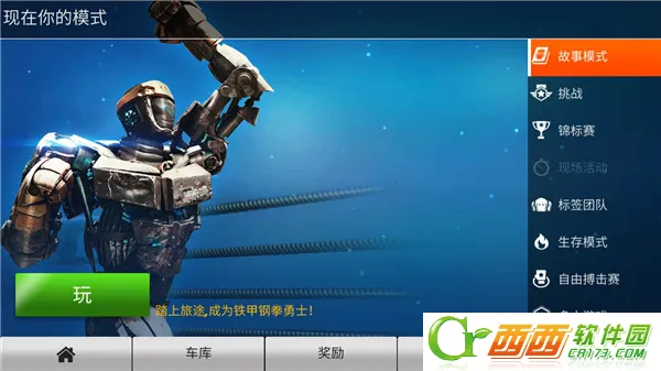 玩家可以拥有多个战斗机器人,但第一个机器人当然是《铁甲钢拳》里的主角——亚当。在进入正式战斗前,我们要先简单升级一下装备。装备升级完毕,开始职业战斗!