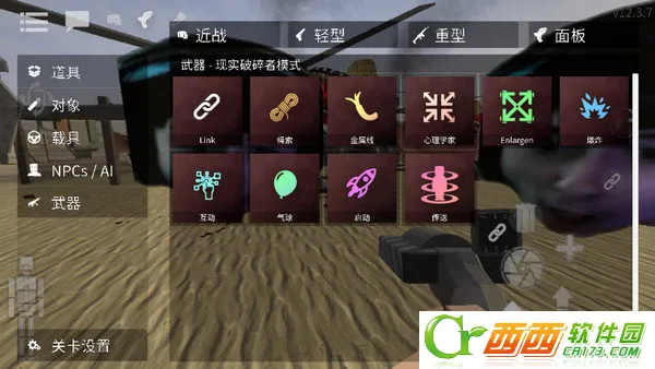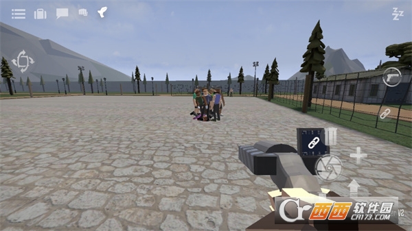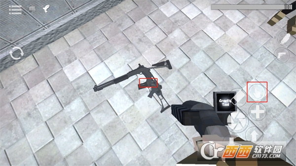 1、打开g沙盒仇恨最新版,想要拿枪就必须先找到一把枪,找到枪后需要将准心放到枪上,这时屏幕左边会出现一个手指按钮,按住手指按钮即可拾取;