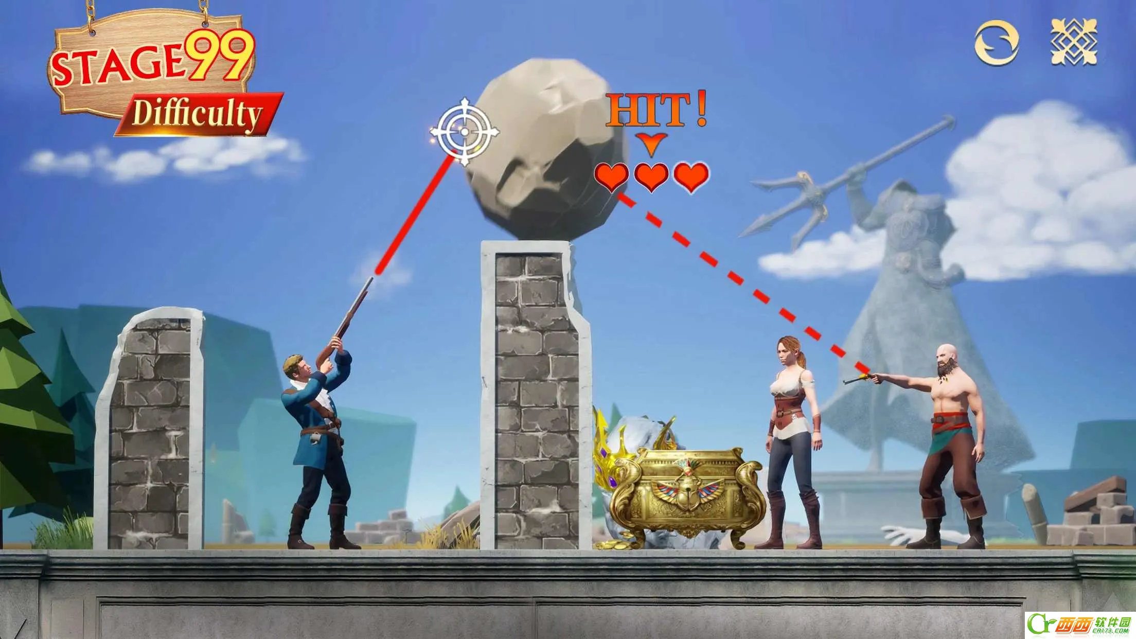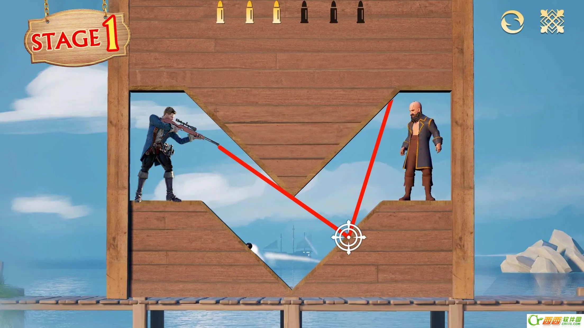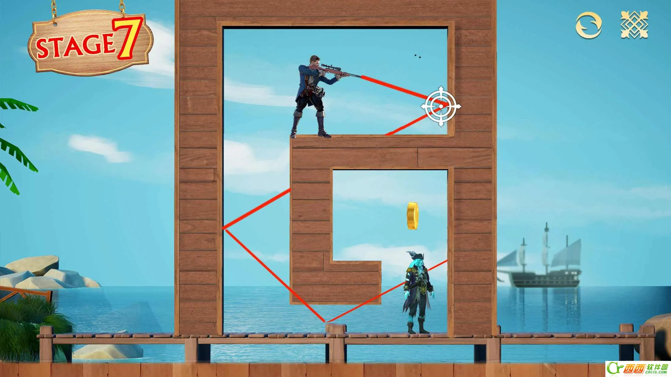 子弹射击金银岛之谜2026最新版是一款射击解谜闯关游戏。采用欧美卡通画风,玩家要找角度利用墙壁弹射消灭敌人,发挥智慧找到过关途径。可挑选角色和武器,有三百多关卡、众多任务待挑战。点击右下角子弹弹射,滑动屏幕控制射击方向,利用障碍击败敌人通关获奖励建设家园。还有完善军火库、多样角色、庞大地图、隐藏宝藏等特色,以及丰富关卡、探索迷雾等亮点。