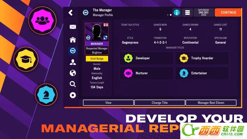 2. 全新深入的经理特质系统,在功能完备的技能树里,能获积分并升级足球经理,拥有新技能。