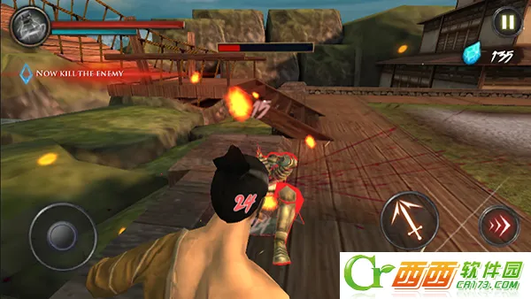 6、看完后即可正式开始游戏,游戏内如图,玩家可通关控制左边的圆圈移动武士,并在地图中击杀敌人;