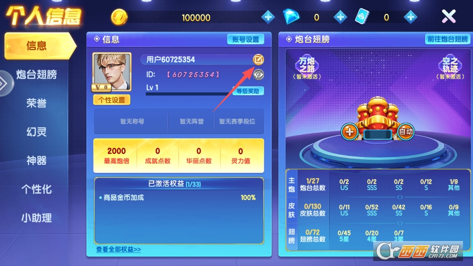 来到个人中心后点击名字右侧按钮即可进行改名