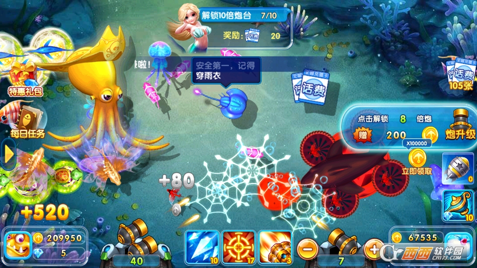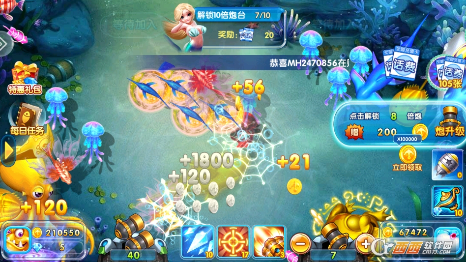 无限金币特权,彻底实现资源自由,这是游戏最核心的优势,区别于同类捕鱼游戏金币有限的短板,该版本内置无限金币机制,玩家无需氪金、无需肝任务,即可获得源源不断的金币供应,炮台升级、押注、道具购买、场景解锁无需担心资源不足,彻底摆脱金币束缚,全身心享受捕鱼乐趣。