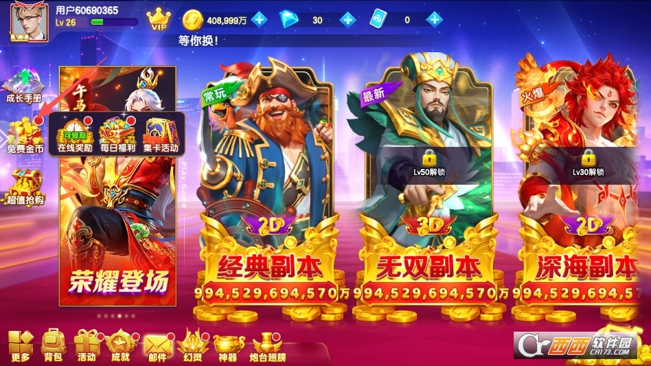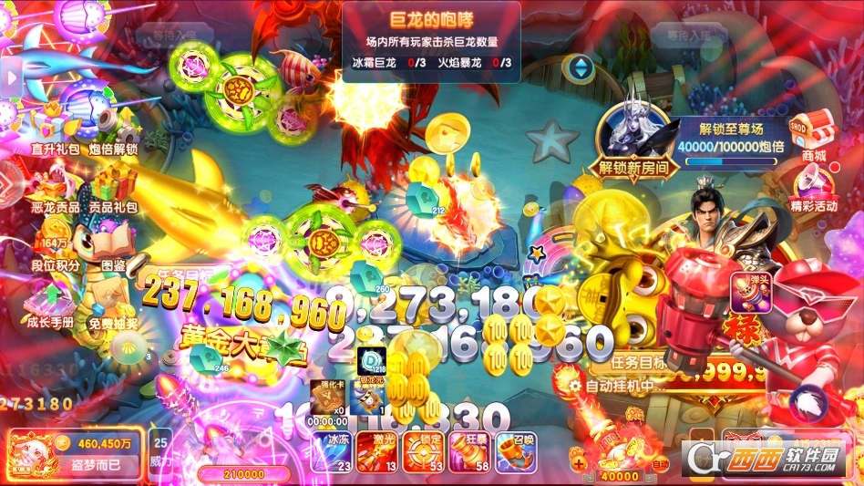 游戏创新加入神兽对战玩法,青龙、白虎两大神兽任玩家选择,神兽大战一触即发,解锁神兽可获得专属技能加持,大幅提升捕鱼效率与爆率,增添游戏的趣味性与挑战性。每日活动不断更新,涵盖签到领福利、闯关赢奖励、限时爆率翻倍等多种形式,玩家无需付费即可轻松获取海量游戏资源,兼顾休闲娱乐与竞技乐趣,是一款深受街机捕鱼爱好者喜爱的高爆率3D捕鱼手游。
