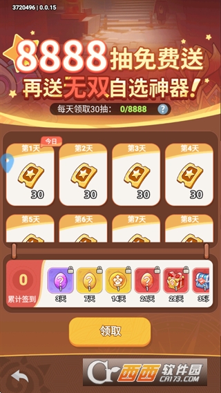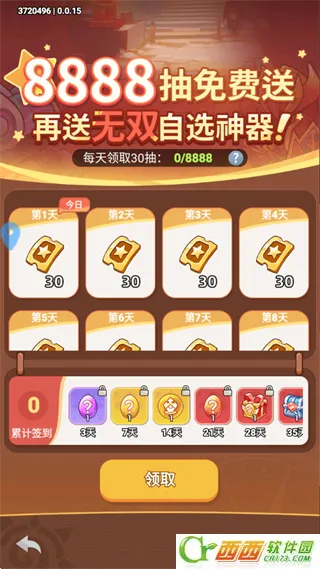 3、新人活动和免费8888抽可以每天领取,可以获取无双英雄,优先选择培养可以提高通关效率。