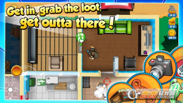 神偷鲍勃2安卓最新中文版是一款轻松休闲的趣味模拟类游戏,玩家将扮演神出鬼没的小偷鲍勃,前往镇上的各个民宅进货盗窃,每个房屋的构造,内饰,价值和危险程度都不一样,你需要一边躲避房屋主人和警察警犬的搜索,一边在规定时间内获取高价值物品并且逃出,获取超多奖励,还能使用各种小道具进行辅助。
