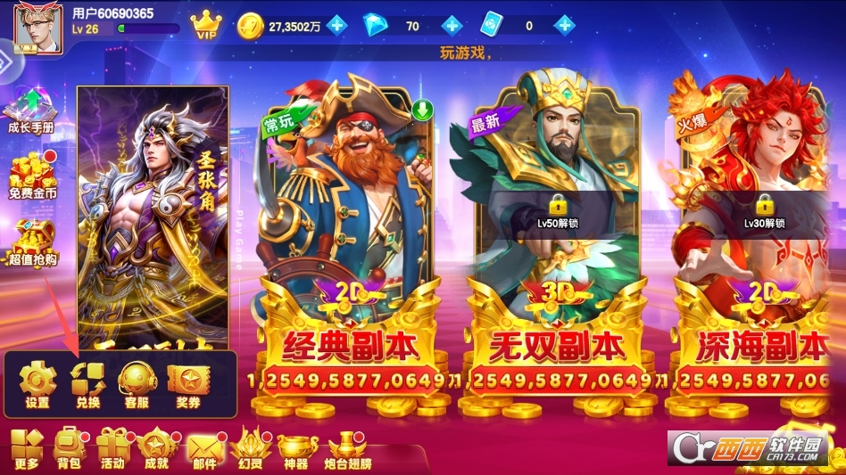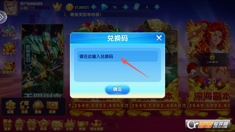 打开游戏,点击主界面左下角按钮,呼出菜单再点击兑换按钮