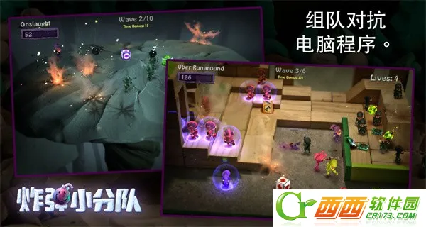 2、玩法以大乱斗扔炸弹为主,操作简单,可通过移动摇杆和按钮控制角色,利用地形道具对抗敌人,还有多种玩法模式。