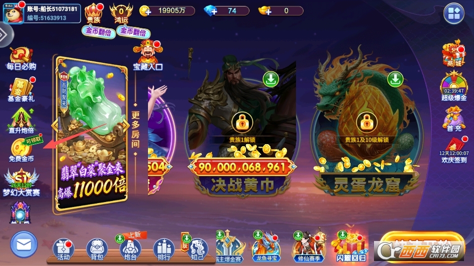 进入游戏后点击主界面左侧的免费金币按钮