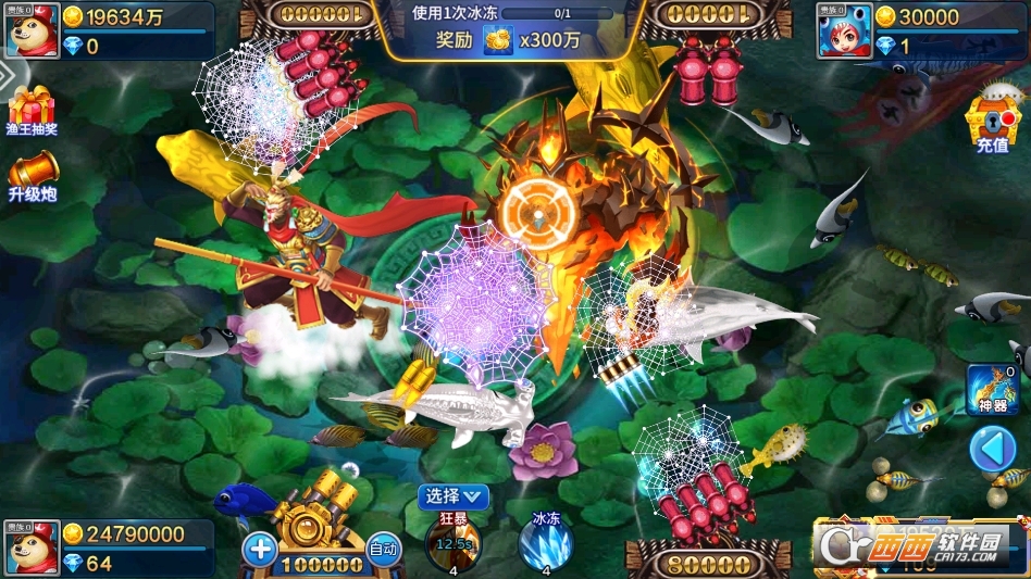 无限金币版开局即提供海量金币,且无消耗上限,捕鱼、使用道具均不扣除金币,可永久免费使用所有倍率炮台。