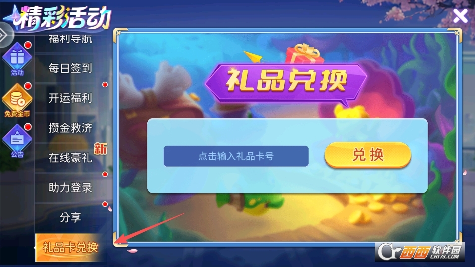 在左侧列表下面可以找到兑换码版块,即可输入兑换码来领取奖励
