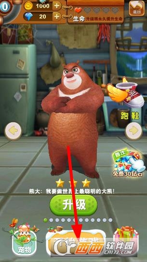 特色:游戏中的熊大和动画片中的一样,它最爱说的一句话就是做世上最聪明的大熊是一件幸福的事情。虽然一开始没有什么技能,但会随着升级来提升技能。