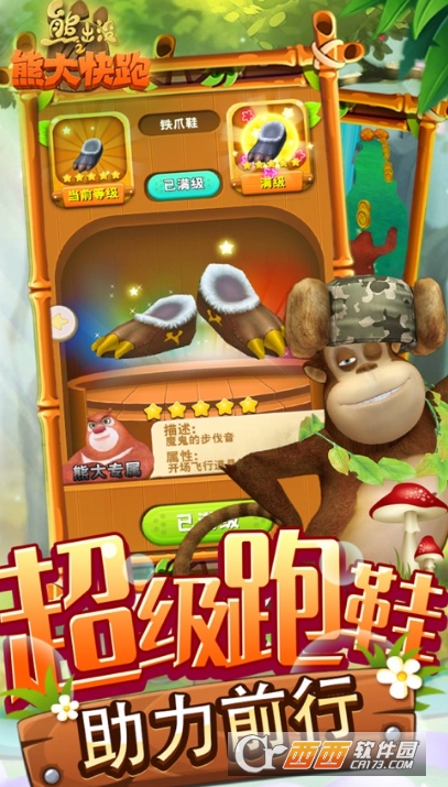 穷玩车富玩表,顶富玩熊大快跑!熊出没之熊大快跑顶富内购版是一款非常有意思的动作跑酷类游戏,完美还原动画片《熊出没》中的熊大熊大,光头强等经典角色,玩家将操控熊大躲避光头强的追捕,一边跑酷一边收集金币,奔跑距离越长获得的积分就越多,还能使用金币解锁超多皮肤与道具辅助,赶紧来下载体验一下吧。